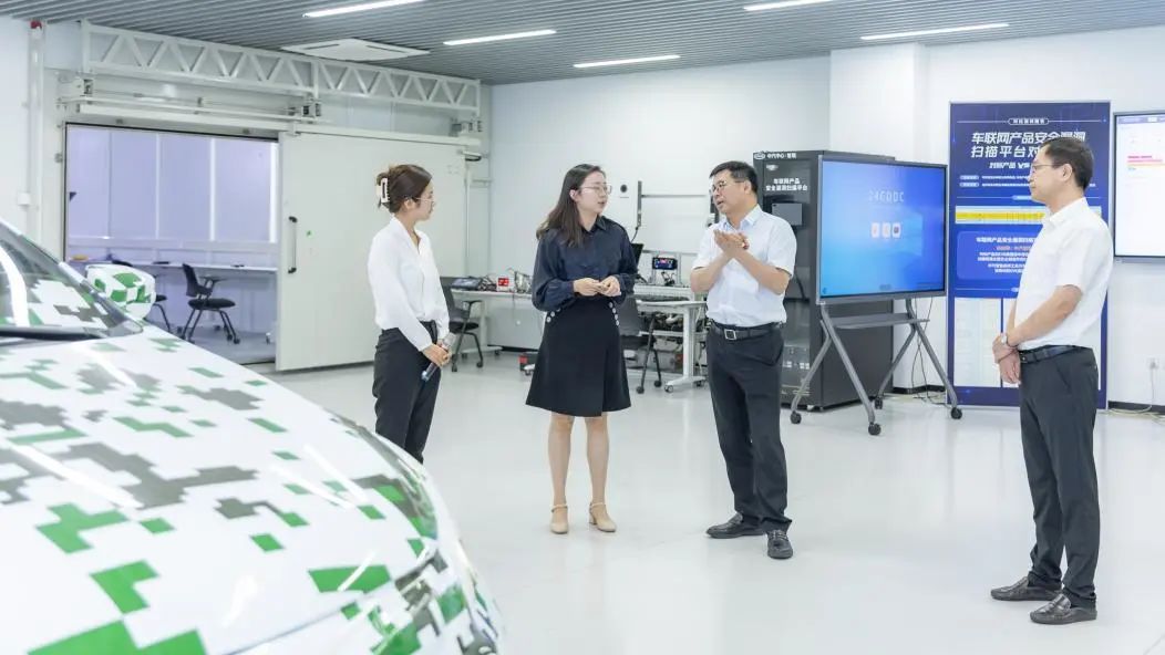簽約儀式后,趙昱鋒一行參觀了中汽中心文化展廊、科技展廳、國(guó)家智能網(wǎng)聯(lián)質(zhì)檢中心和中汽信息安全研究中心,并聽取了相關(guān)工作介紹。
