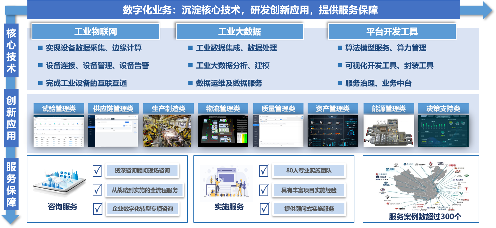 在“工業(yè)互聯(lián)網(wǎng)+數(shù)字化轉(zhuǎn)型+智能制造”的國家戰(zhàn)略背景下,致力于推進(jìn)汽車企業(yè)智能制造、數(shù)字化轉(zhuǎn)型業(yè)務(wù)發(fā)展。業(yè)務(wù)覆蓋汽車制造、物流、供應(yīng)鏈、能源、設(shè)備等各環(huán)節(jié)數(shù)字化建設(shè),為客戶提供全方位咨詢、項(xiàng)目實(shí)施、自主工控軟件產(chǎn)品及解決方案服務(wù)。