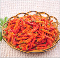 印度當(dāng)?shù)胤Q(chēng)為:德加,國(guó)內(nèi)稱(chēng)為印度小椒。受印度東部獨(dú)特的熱帶季風(fēng)性氣候,常溫在38度以上,所生產(chǎn)出的干辣椒:色澤光亮深紅,辣味特別濃重,味國(guó)內(nèi)普通干辣椒的3-4倍。最適合口味濃重的熟食加工使用。 |