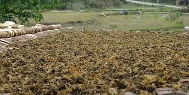 ▲ 匡老五包菜絲——傳統(tǒng)的竹床晾曬